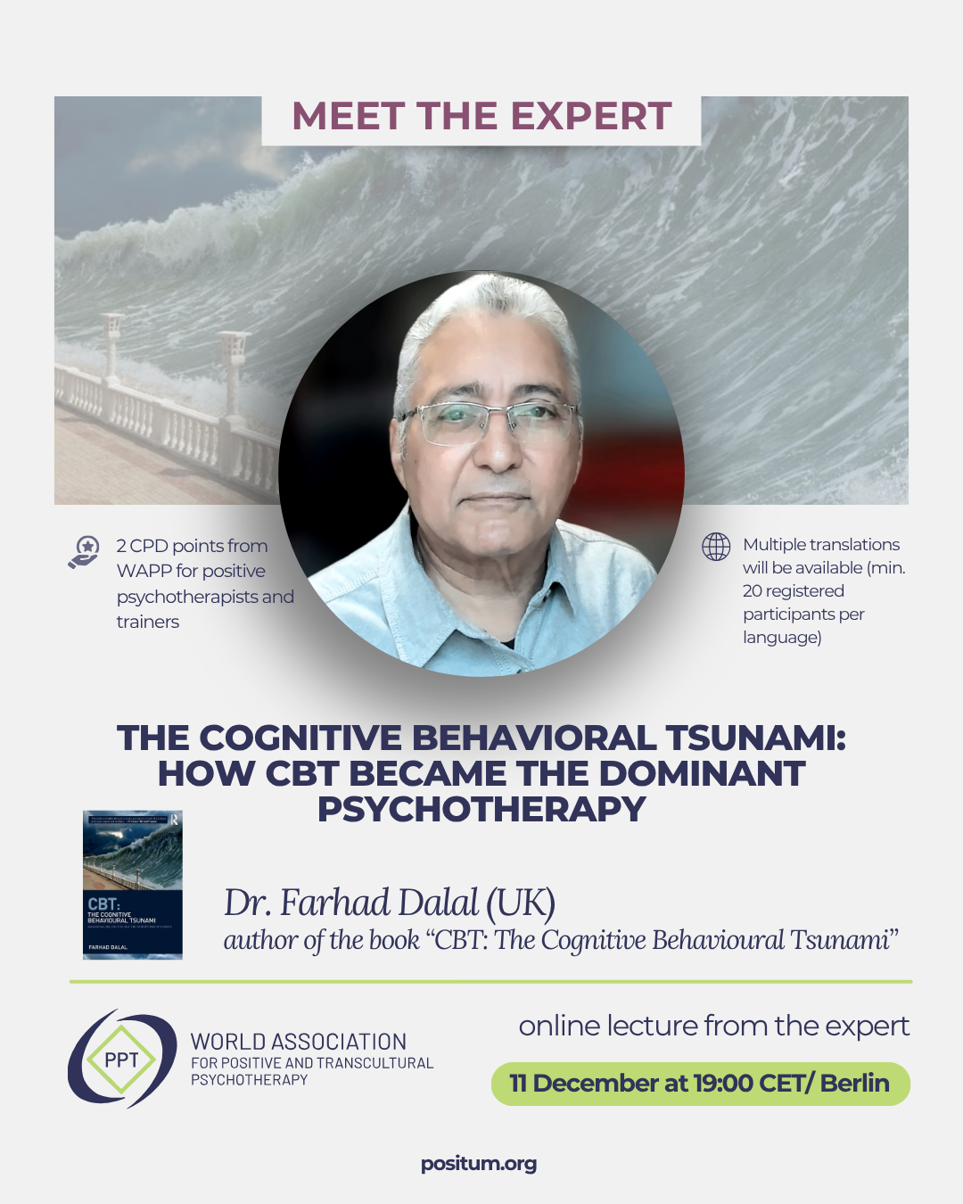 "The Cognitive Behavioral Tsunami: How CBT became the dominant psychotherapy" with Dr. Farhad Dalal — renowned psychotherapist, group analyst, and author of the groundbreaking book “CBT: The Cognitive Behavioral Tsunami”.